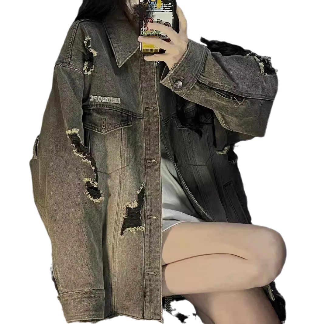 | nameOriginal | Denim Coat Women's Spring 2024 New American Style Retro Ripped Washed Old Loose Jacket Cardigan Top Trendy |