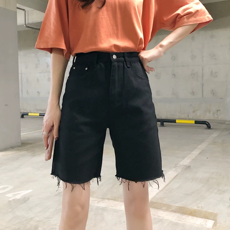 | nameOriginal | Denim high-waisted retro raw edge straight Hong Kong style trousers |