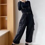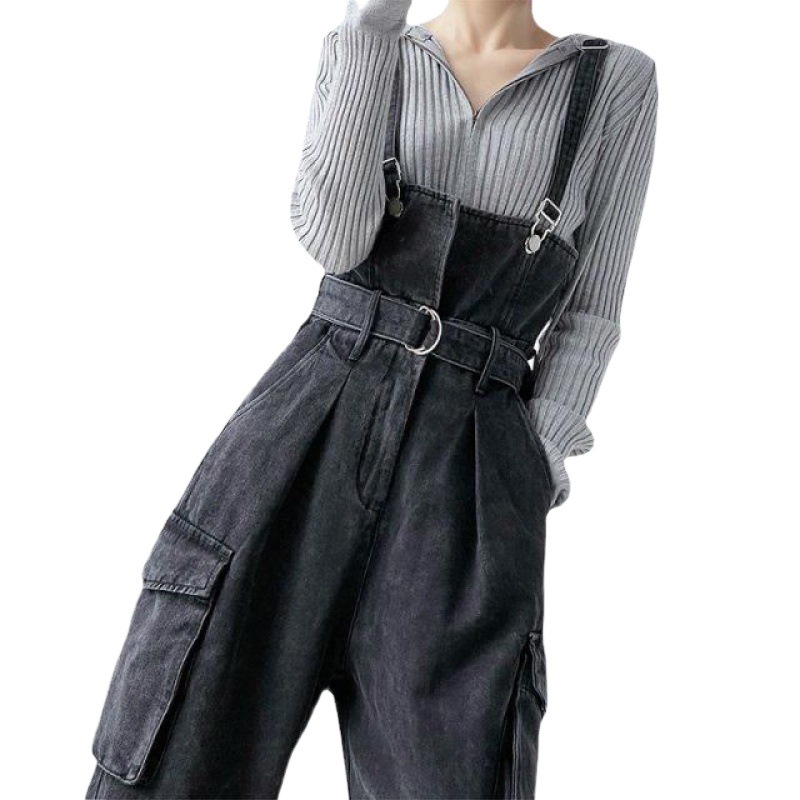 Denim Overalls Distinctive Fashion Black Grey Women's Workwear Style Loose High Waist Slimming Casual Harlan Pants Women's Spring and Autumn