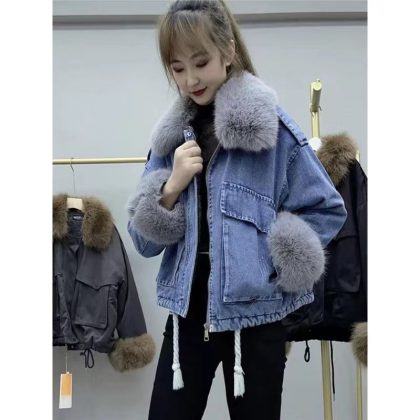 | nameOriginal | Denim parka women's clothing 2022 winter New loose large fur collar fleece-lined thickened cotton-padded coat cotton-padded short ins fashion |