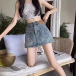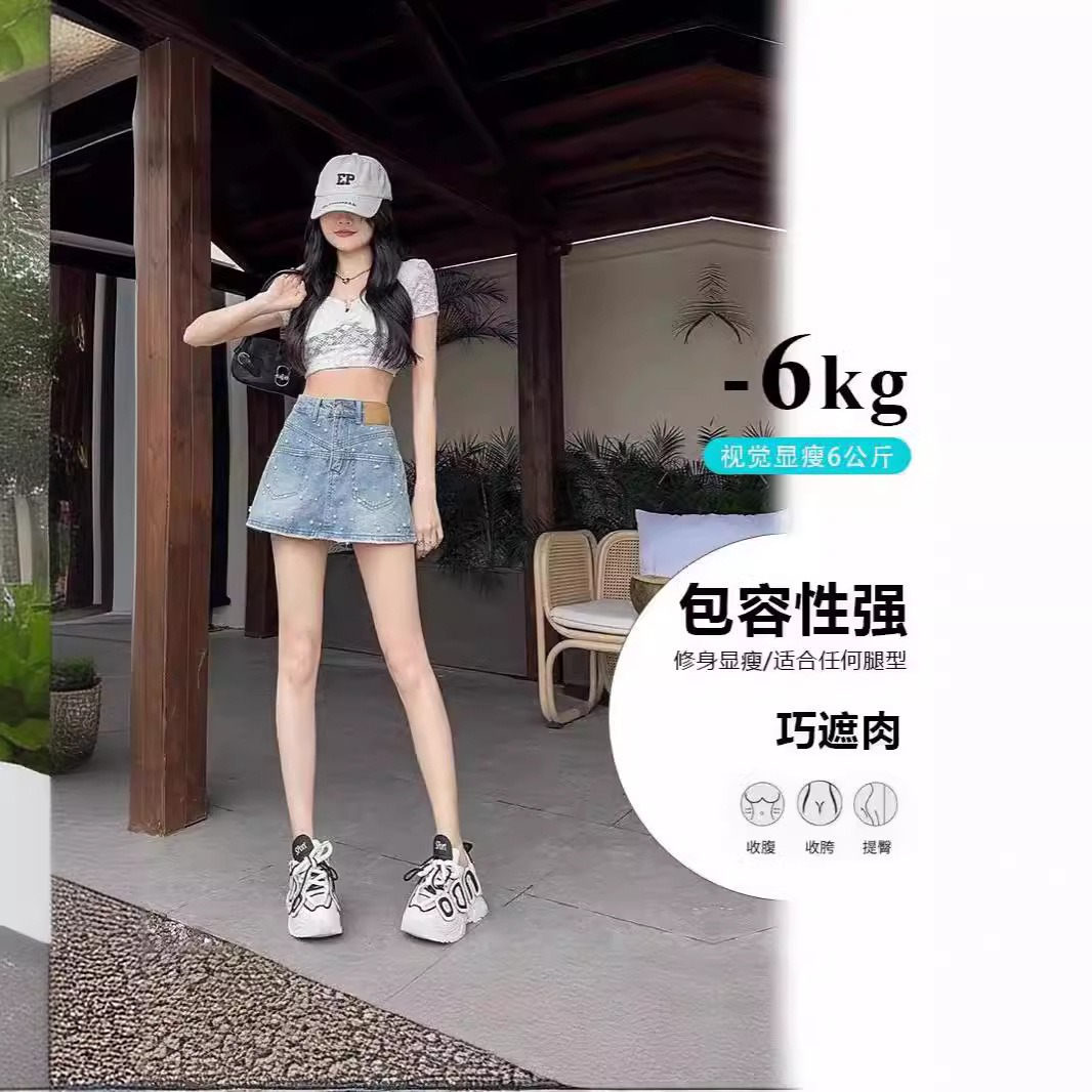الدنيم السراويل القصيرة تنورة المرأة الصيف رقيقة 2024 جديد سليم الإنترنت المشاهير الحفر الساخن فضفاض تصميم السراويل المتفجرة