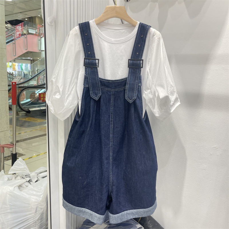 | nameOriginal | Denim sling 2023 new summer single suit back pants wide leg short women's loose Korean-style age-reducing one-piece casual pants |