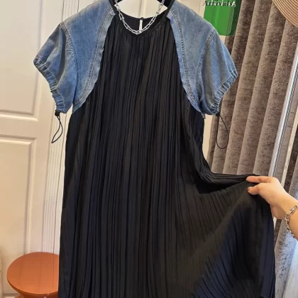 | nameOriginal | Denim texture pleated short-sleeved drawstring loose dress |