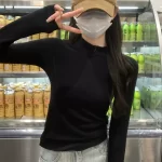 | nameOriginal | DeRong Spring Half Turtle Neck Slim Long Sleeve Fishbone T-Shirt |