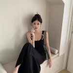تصميم فستان صيفي أسود بحمالات على شكل حرف A