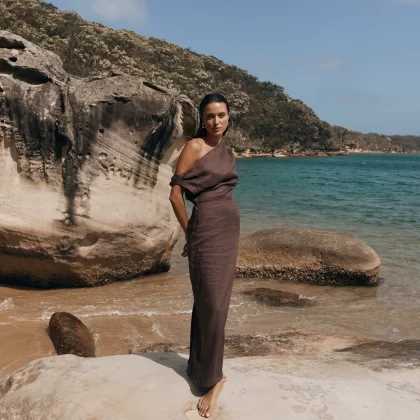 | nameOriginal | Design niche dress asymmetric pleated linen |