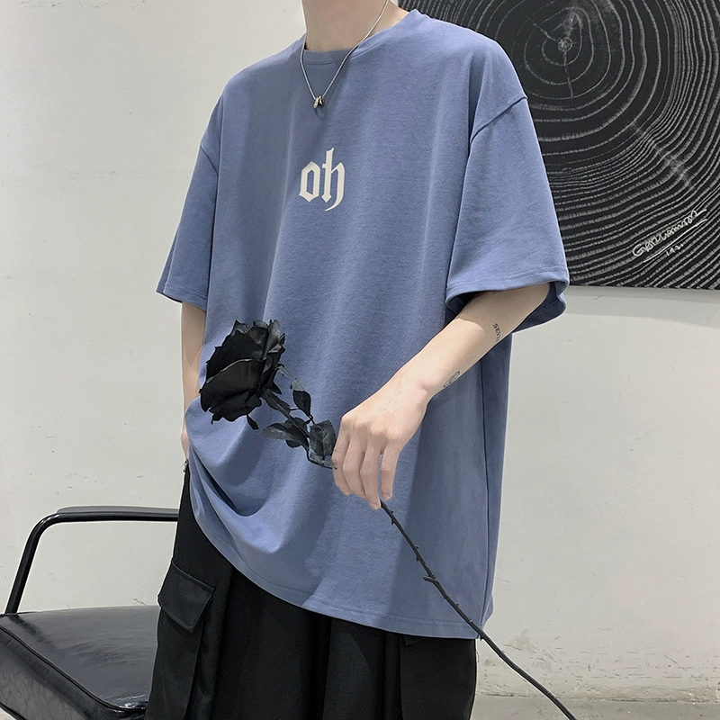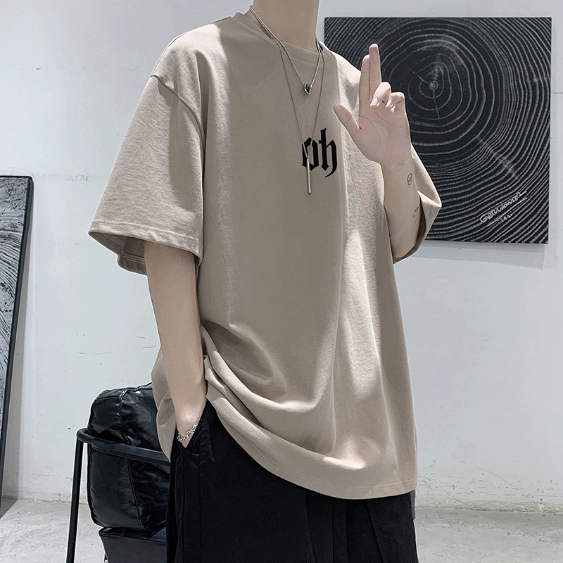 Design niche t-shirt men's ins trend versatile loose five-quarter sleeve summer Hong Kong style clothes simple short sleeves for couples
