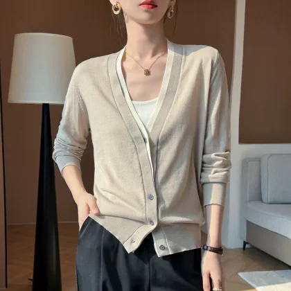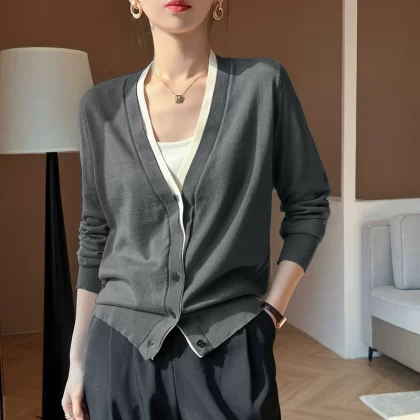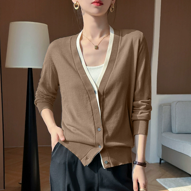 | nameOriginal | Design niche versatile wool tops for women 2024 autumn and winter lazy style V-neck knitted cardigan casual jacket |