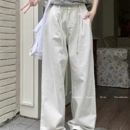 | nameOriginal | Design niche white high-waisted floor-length pants with drawstrings |