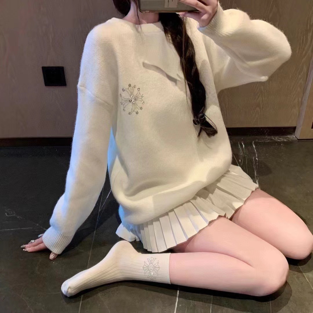 | nameOriginal | Design sense back Sanskrit rhinestone round neck slimming sweater lazy style loose age-reducing pullover sweater with socks |