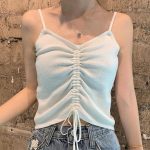 | nameOriginal | Design Sense Drawstring Camisole Women's 2024 Summer New Korean Style Slim-fit Collar Knitted Sleeveless Base Top Trendy |