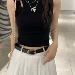 | nameOriginal | Design sense hollow black sleeveless vest for women summer 2024 new short sexy versatile tight outer top |