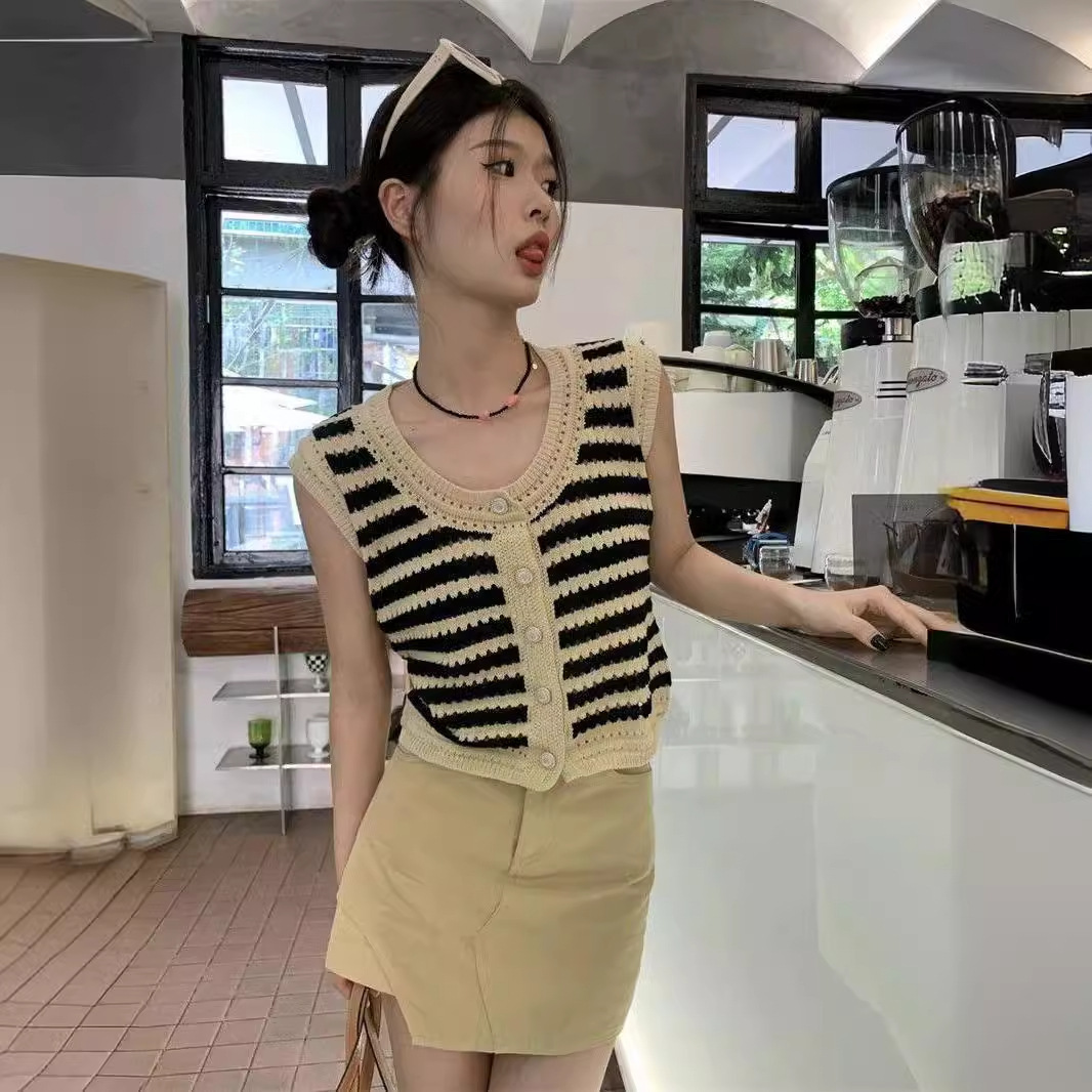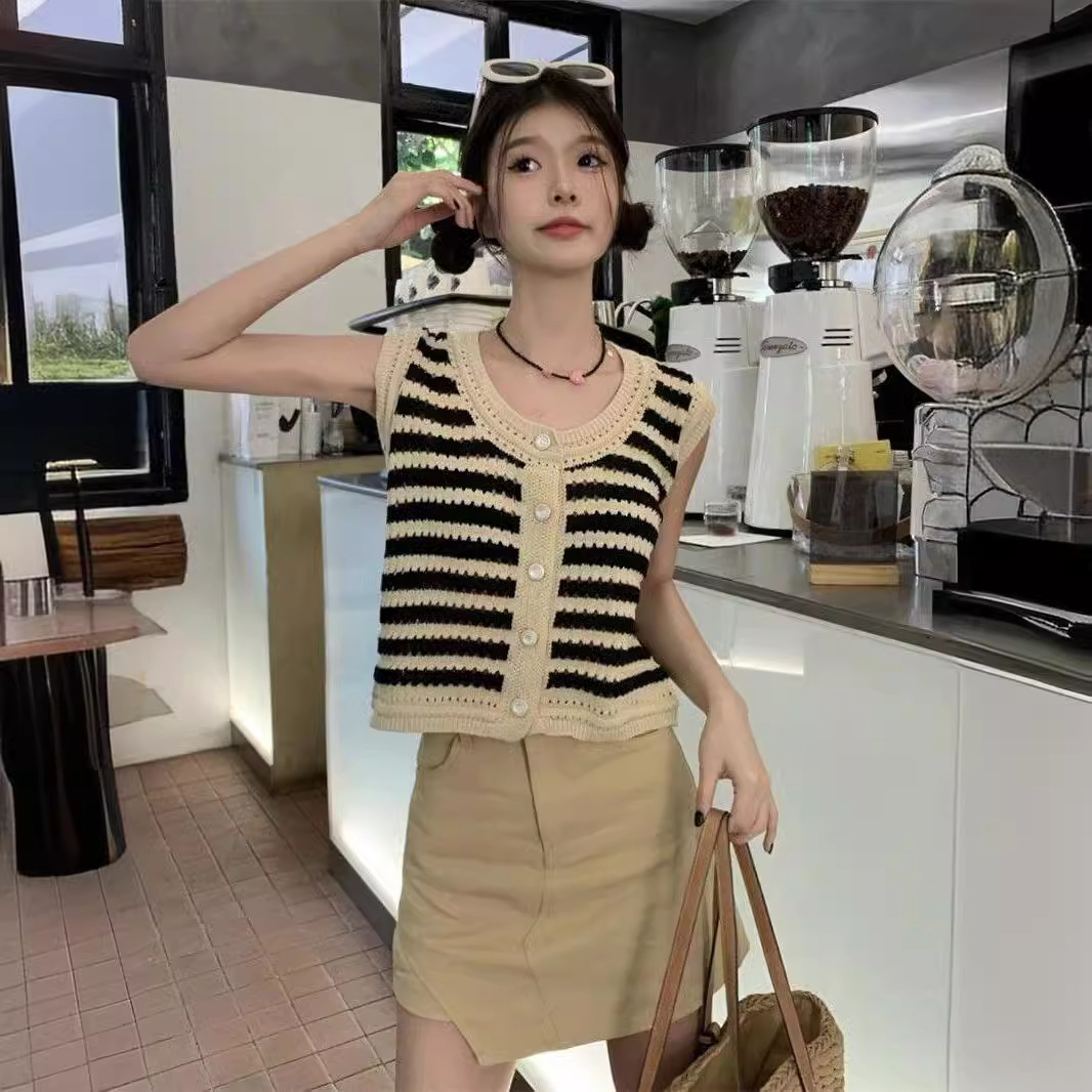 | nameOriginal | Design Sense Hollow Knitted Sweater Sleeveless Vest Women's Outer Wear Summer New Style Small Slim-fit Slim-fit Short Top |