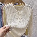 | nameOriginal | Design Sense Lace-up Hollow-out Sunscreen Knitted Cardigan Jacket Women's Summer Short Blouse with Slip Skirt Outer Top |