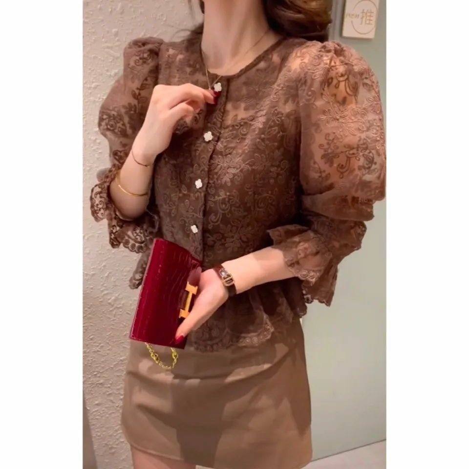 | nameOriginal | Design Sense Niche 2022 Autumn New Water-soluble Embroidered Mesh Shirt Slim-fit Slimming Top Base Shirt Women |