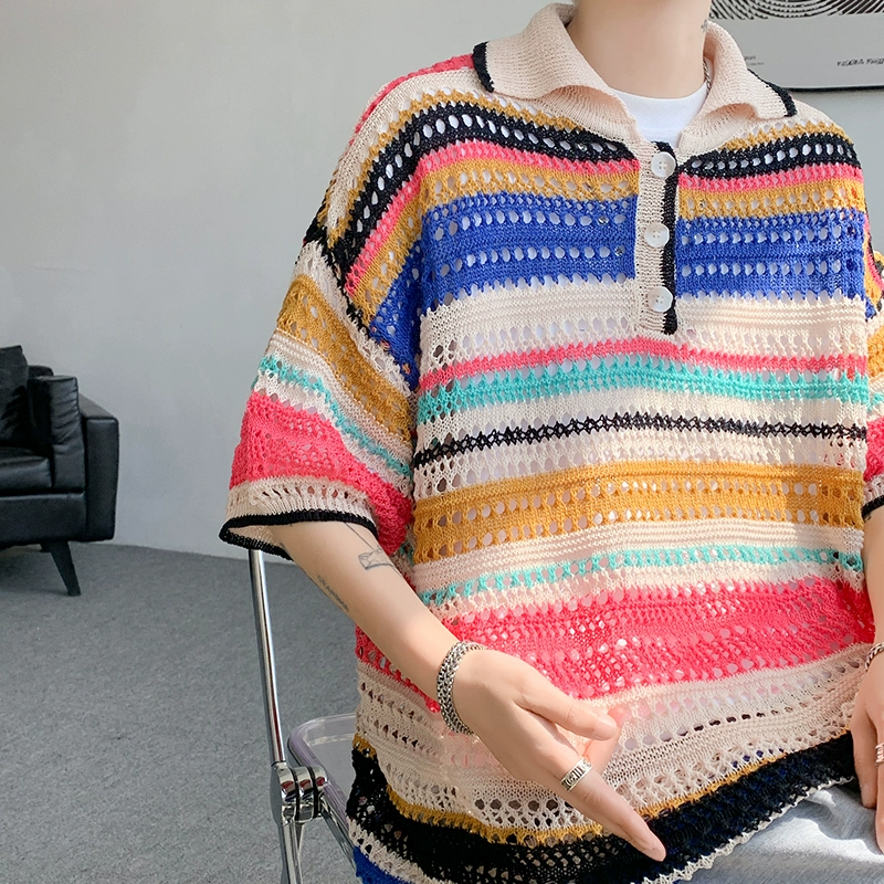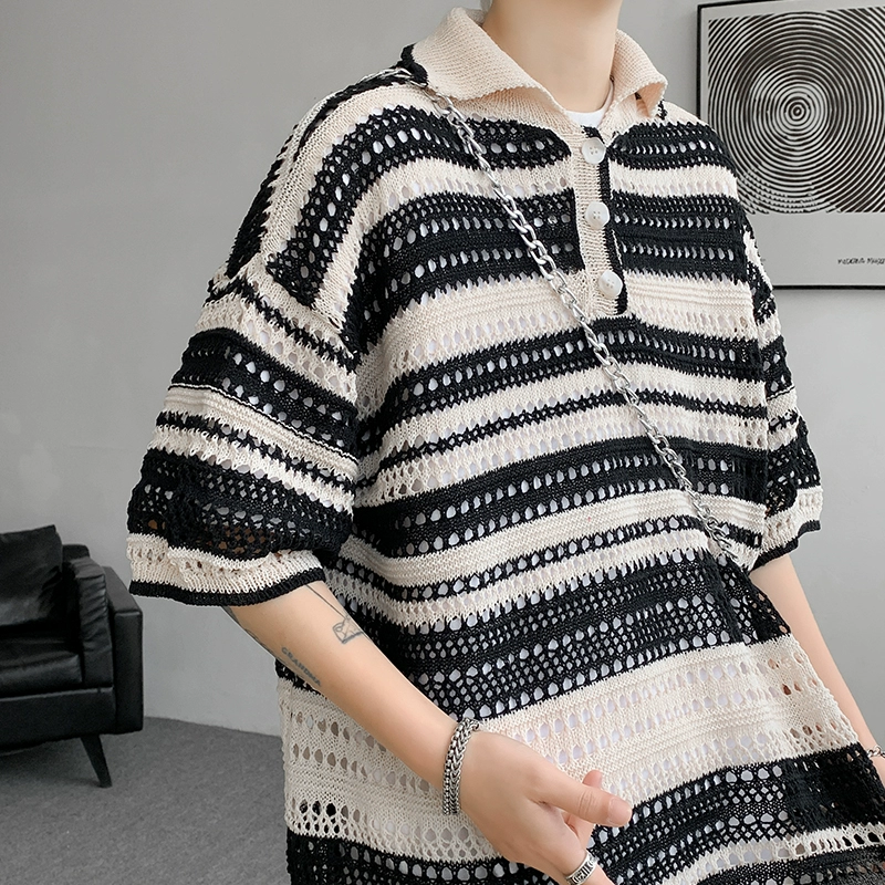 | nameOriginal | Design sense niche hollow polo collar T-shirt men's summer clothing plus fat large size trendy fat people loose handsome top half sleeve |