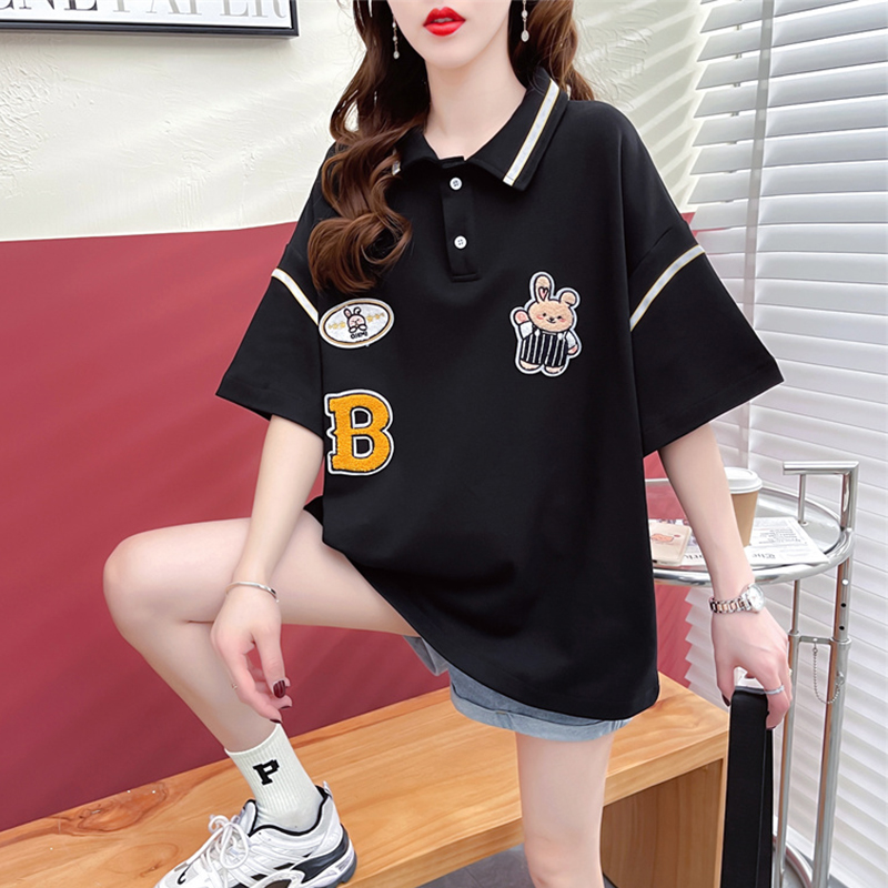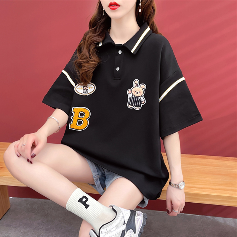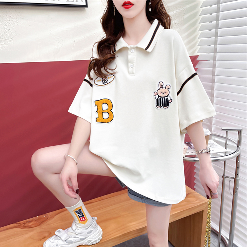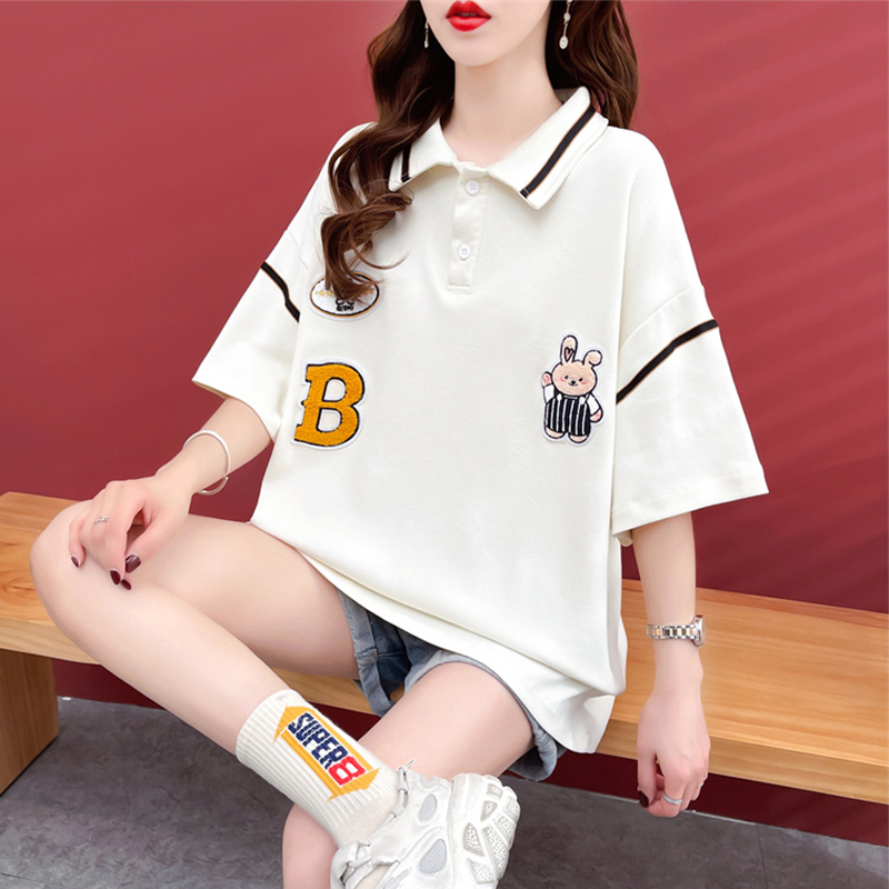 Design Sense Niche Short-sleeved T-shirt Women's Summer Clothing Korean Loose plus size Mid-length Polo Collar Japanese Fashionable Top