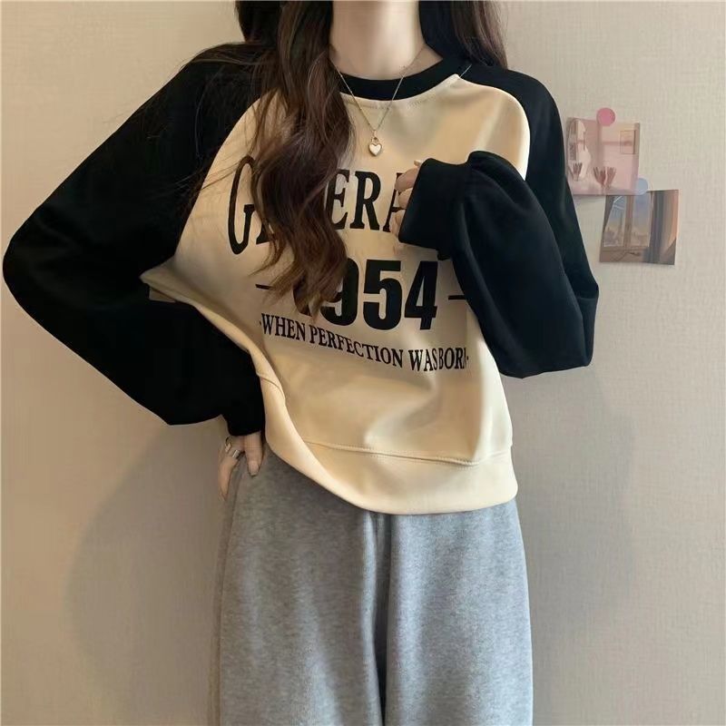 Design Sense Super Good-looking American Style Sweat Women's Autumn Large Size Chubby Slim French Lazy Style Shoulder Short Top