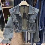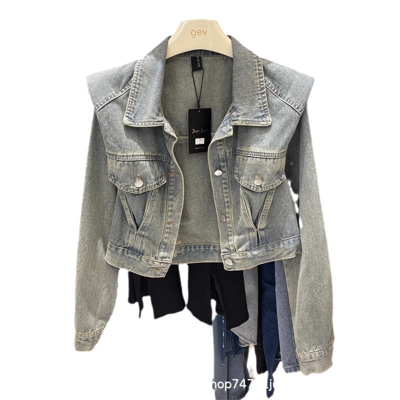 | nameOriginal | Design shoulder pad Denim coat for women Spring and Autumn New Hong Kong style retro elegant loose all-match short jacket top |