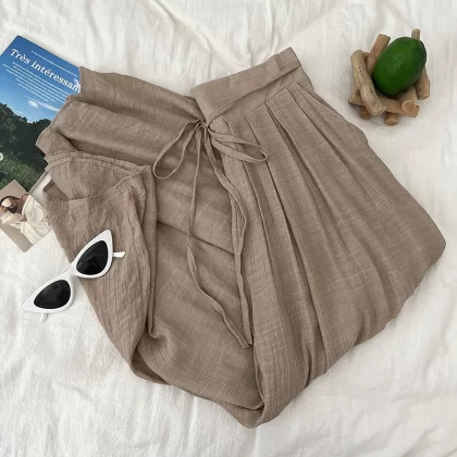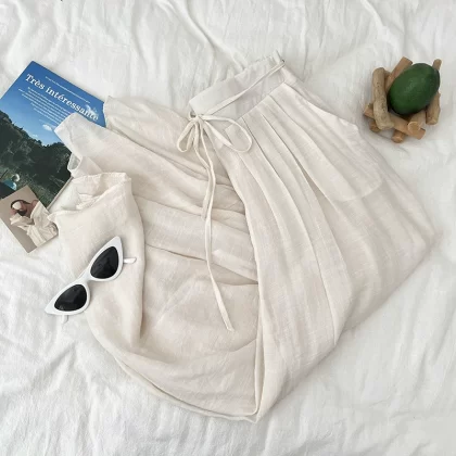 | nameOriginal | Designed and fashionable lace-up high-waisted slimming pleated pants |