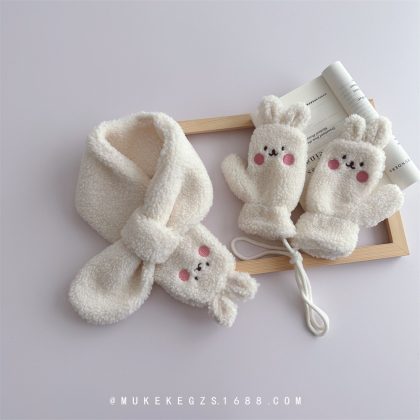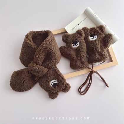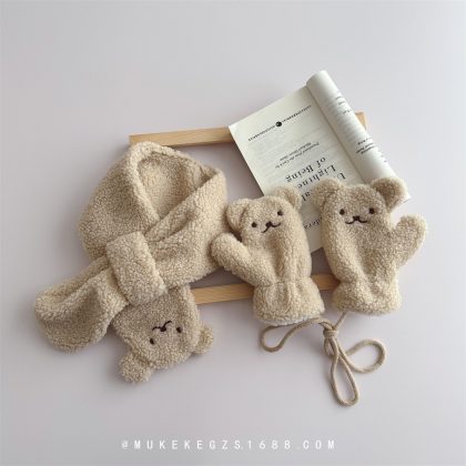 | nameOriginal | Designer Children's plush khaki scarf gloves two-piece Winter cute baby lambswool scarf suit |