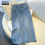 | nameOriginal | Designer denim skirt summer embroidered back slit |