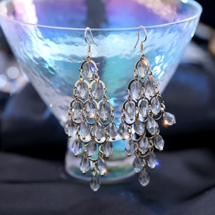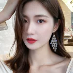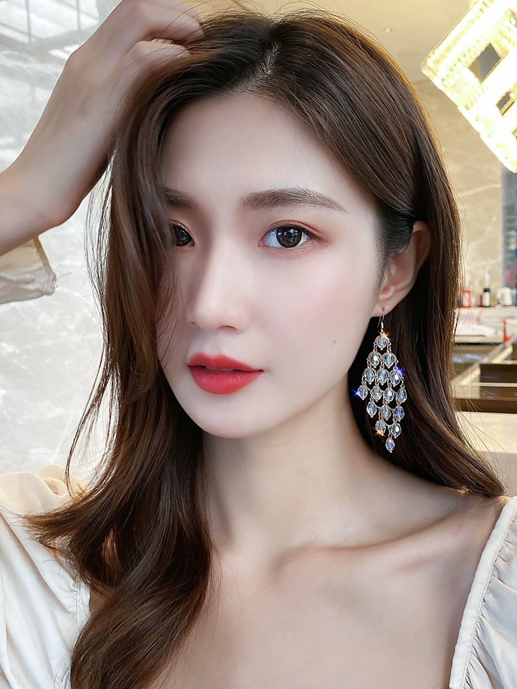 أقراط الكريستال الماس أنثى الأقراط الطويلة 2024 Tide New Tide European and American Super Glitter Net Net Red Strains