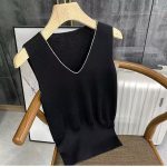 Diamond Vest Sling with Ice Silk V-Neck Summer Outer Wear Knitted Shirt Short Hot Girl Top Women's Base Shirt Trendy