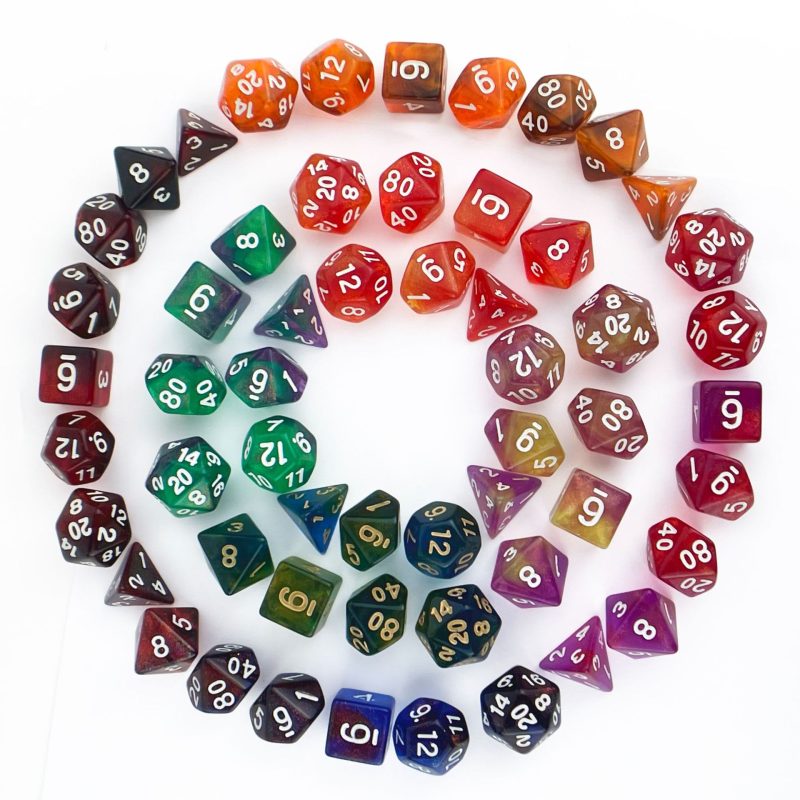 لعبة لوحة النرد من الأكريليك بلونين شفاف الحرباء عبر الحدود COC متعدد السطوح DND لعبة النرد تشغيل مجموعة النرد