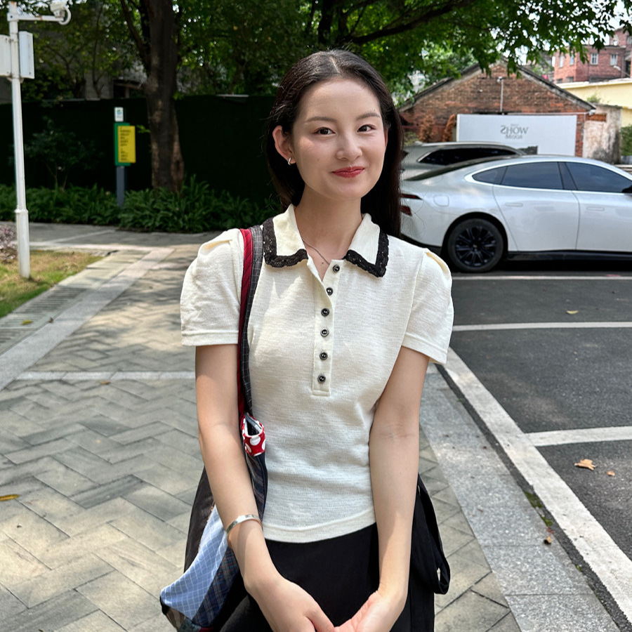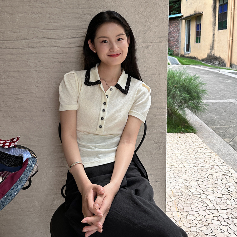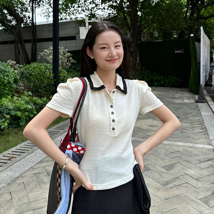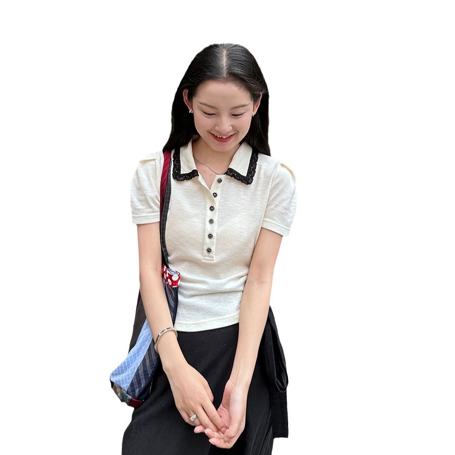 | nameOriginal | [DIGM] Korean Sweet Doll Collar Lapel Stitching Lace POLO Shirt Short Sleeve T-Shirt Women's 66018 |