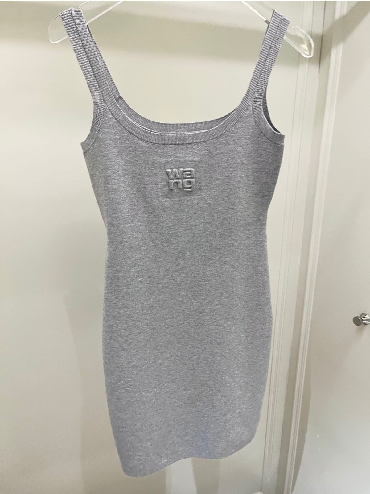 تنورة بحمالة من الصوف باللون الرمادي الفضي