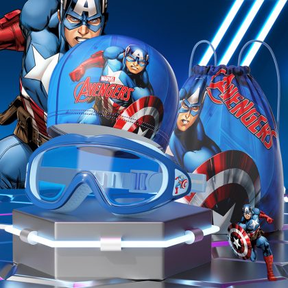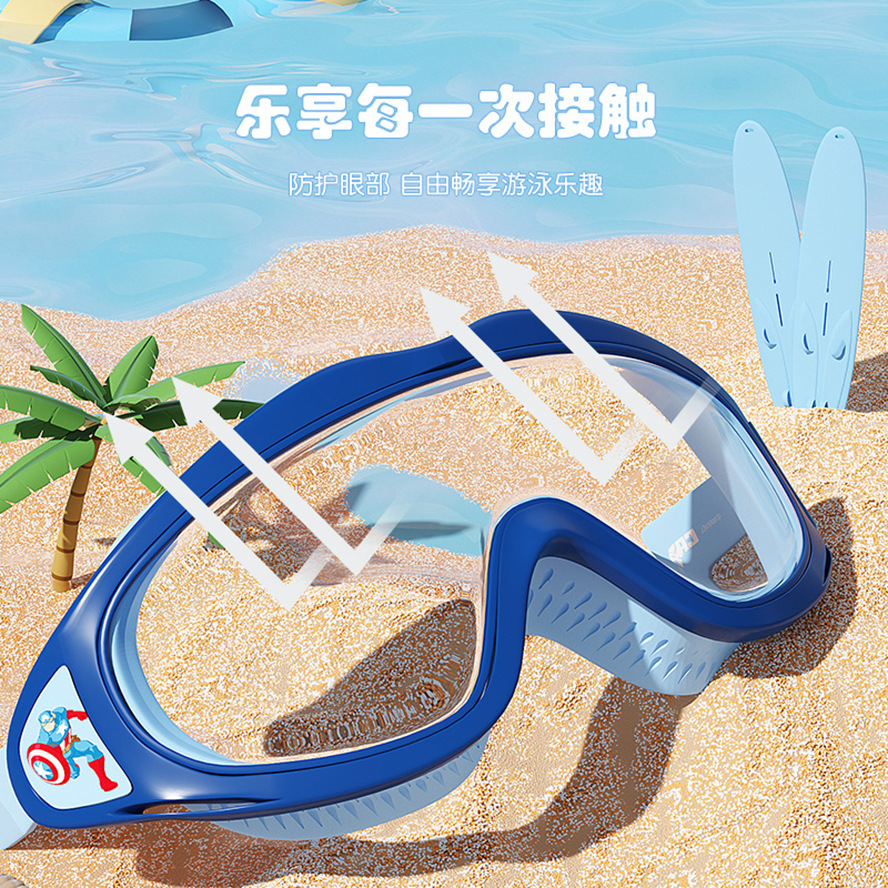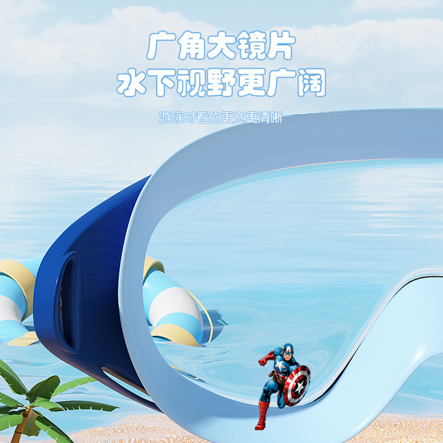 Disney children's goggles swimming cap Marvel boys and girls glasses waterproof anti-fog HD large frame professional set of equipment