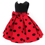 فستان أميرات ديزني ميني للأطفال، فستان بناتي، ربطة شعر صيفية، فستان عيد ميلاد الطفل الأول باللون الأحمر