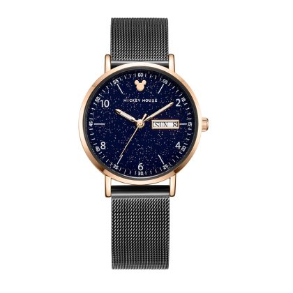 ساعة ديزني بتقويم مزدوج موضة كورية بمينا كبير كوارتز ساعة بسوار شبكي للطلاب ساعة نسائية 209/269