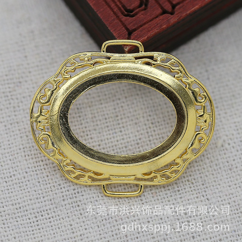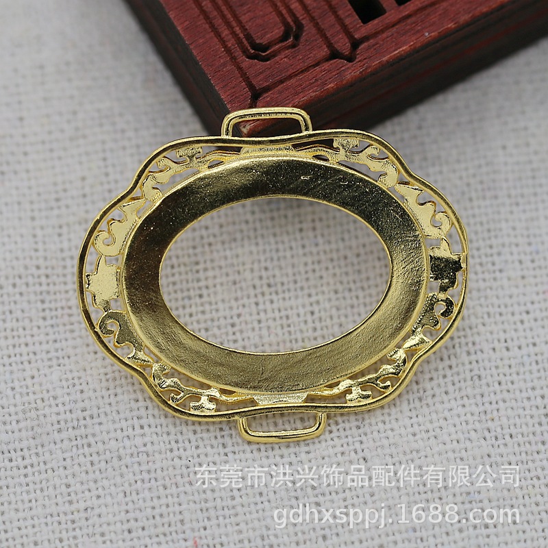 DIY jewelry pure copper gem bottom pressure flap color retention antique accessories handmade 31*38mm oval ring holder B2346