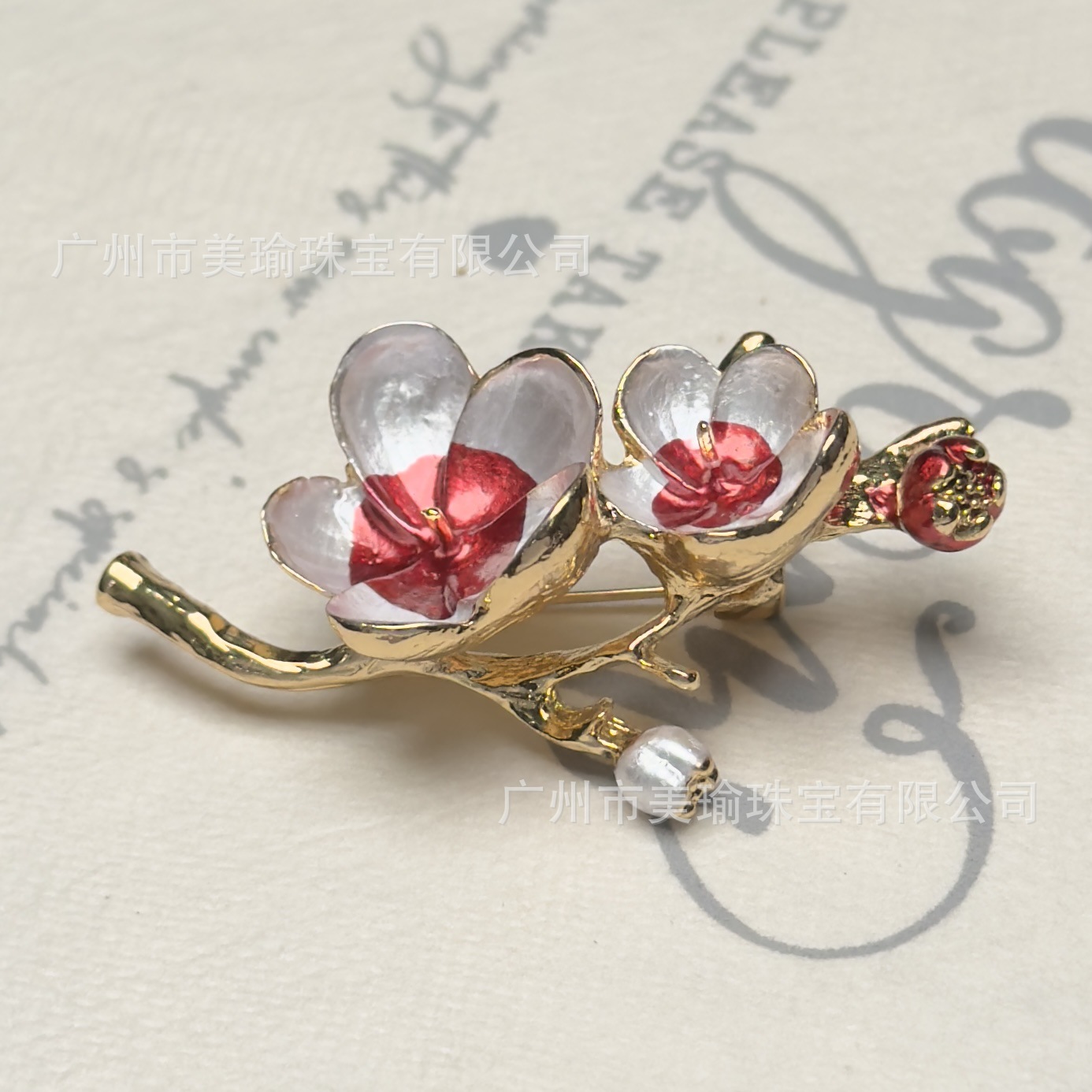 DIY Pearl Accessories Alloy Pearl Plum Blossom Brooch Zircon Thick Gold Plated Brooch Brooch Brooch Semi-finished Empty Bracket Accessories