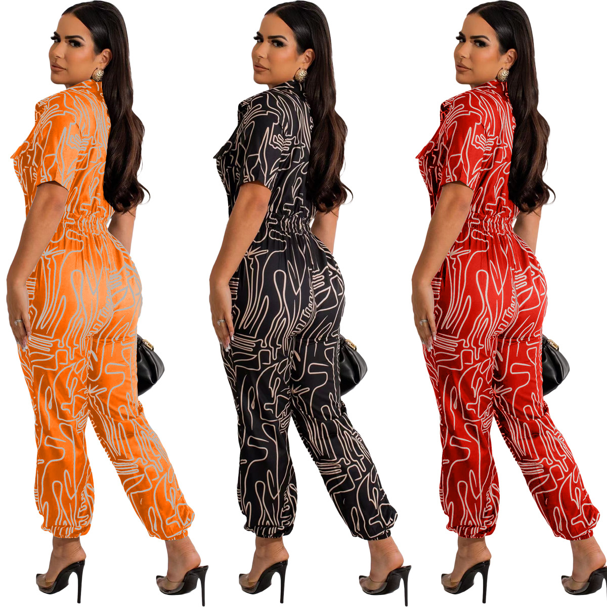DL88802 Amazon Independent Station AliExpress European and American Foreign Trade Women's Fashion Printed Jumpsuit