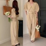 | nameOriginal | Doll Collar Lace-up Waist Slim Look Tall Workwear jumpsuit Wide-leg floor-length jumpsuit |