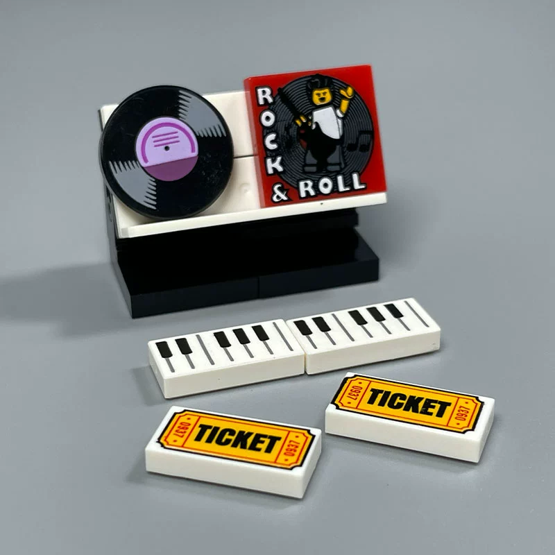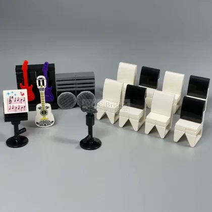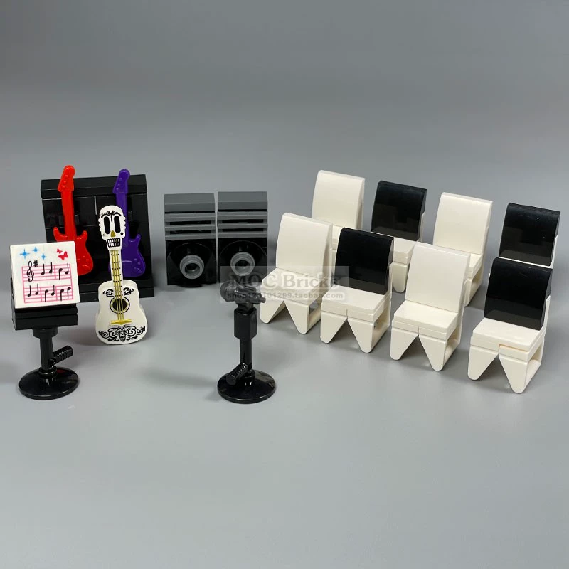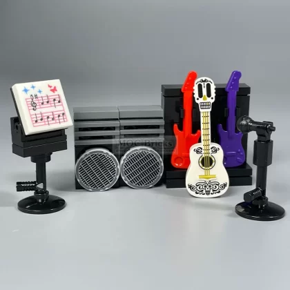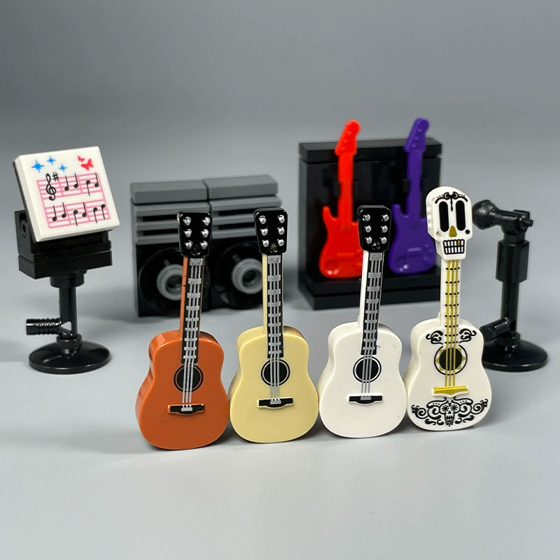 | nameOriginal | Domestic assembled building blocks toys musical instruments piano drums guitar bass saxophone audio microphone stage scene |