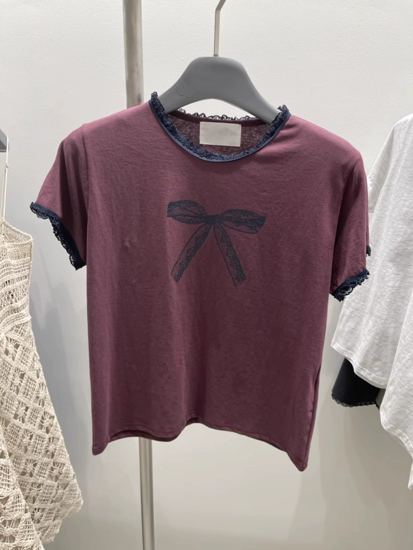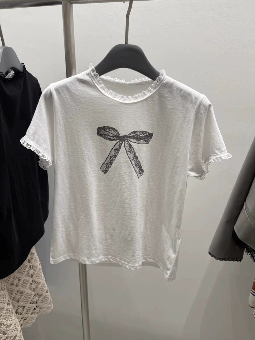 | nameOriginal | Dongdaemun lace spliced short sleeves with bow print |