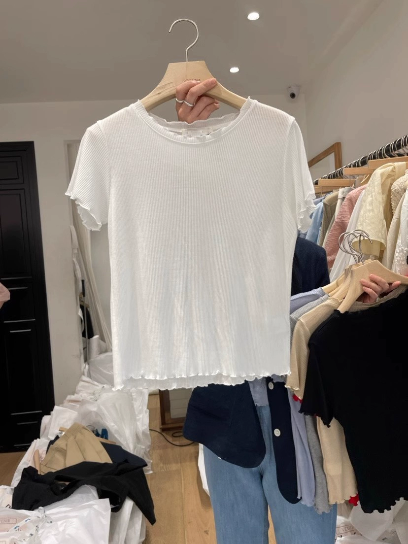 Dongdaemun summer fungus slim short-sleeved T-shirt