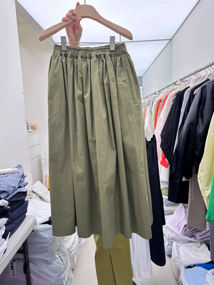 Dongdaemun summer solid color elastic pocket skirt
