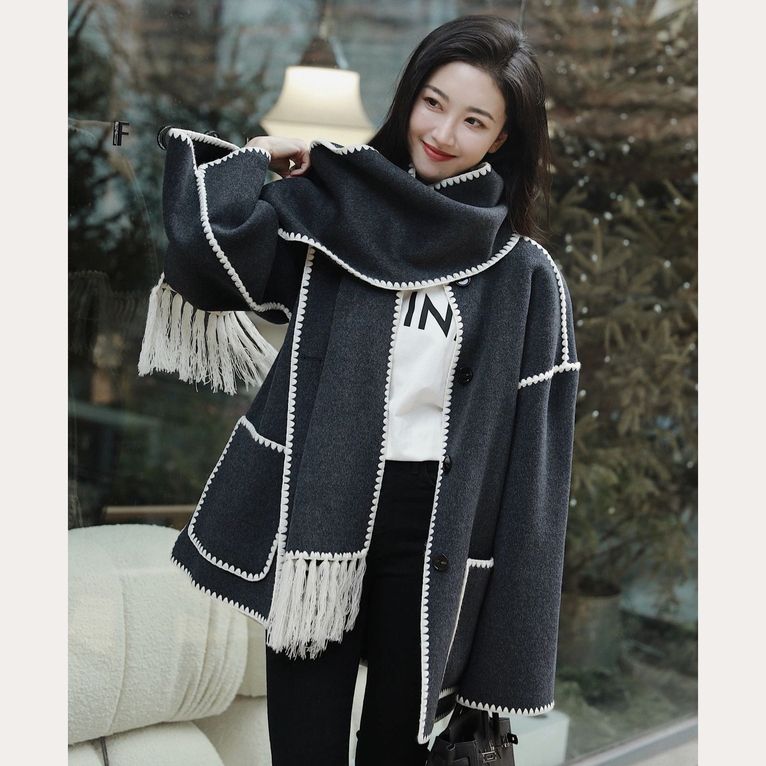 | nameOriginal | Dongzhuo 24 spring/summer new double-sided nylon tassel scarf loose casual embroidered jacket jacket mid-length |