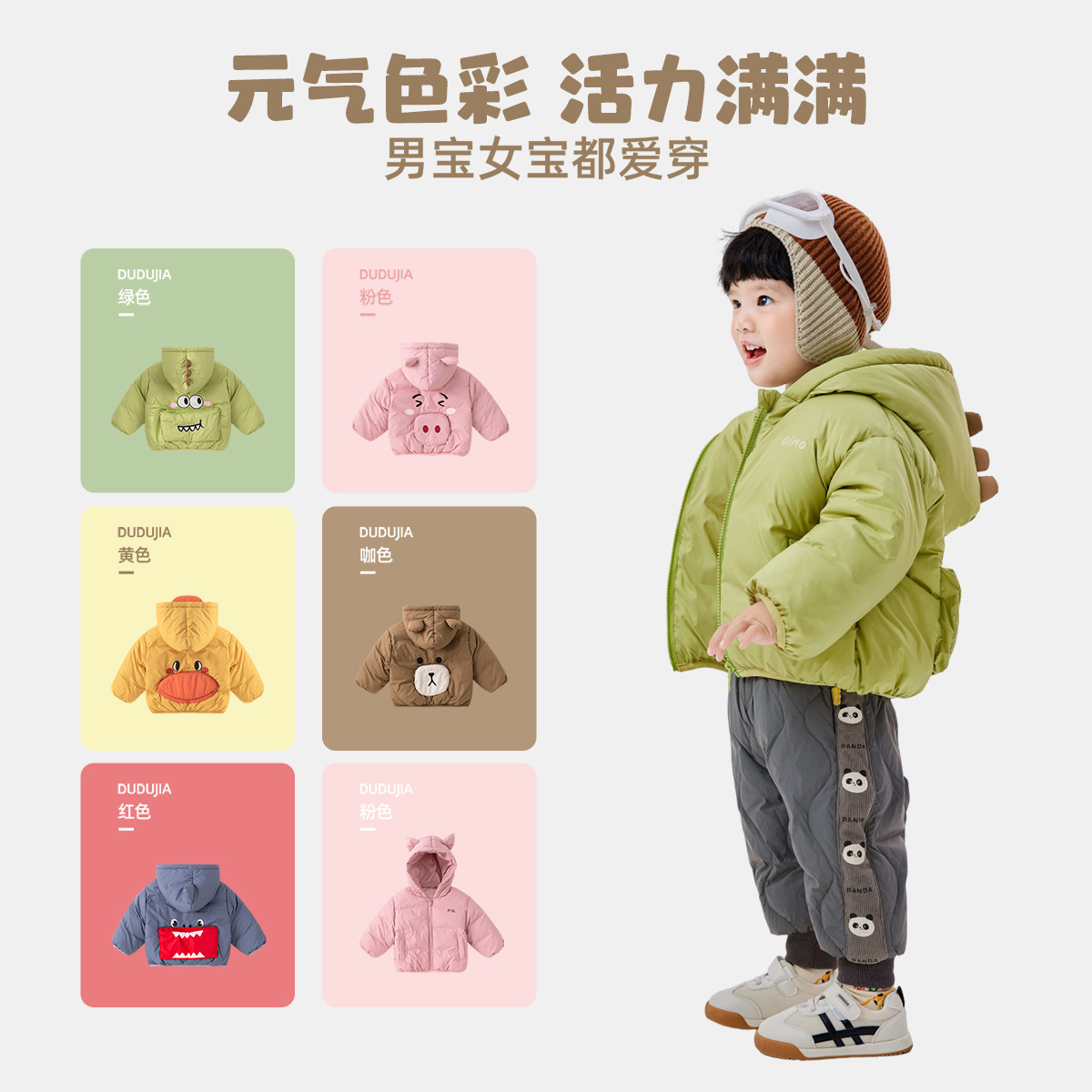 Doodle Boy's Cotton-padded Coat Winter Wear Warm Baby's Winter Cotton-padded Coat Hooded Cute Girl's Zipper Coat Winter Fashion