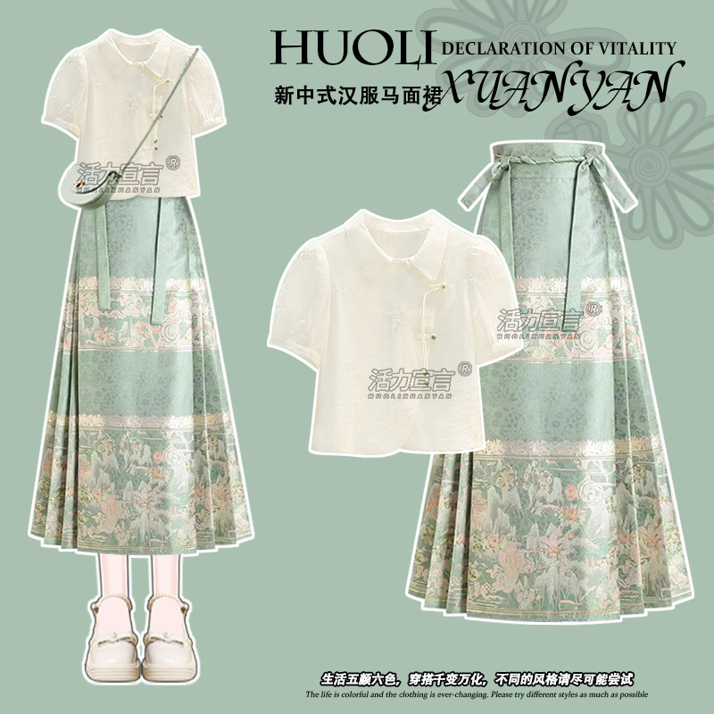 | nameOriginal | Dopamine Hanfu Green Horse-faced Skirt suit Women's Summer 2024 New Chinese Element National Style New Chinese Style Skirt |