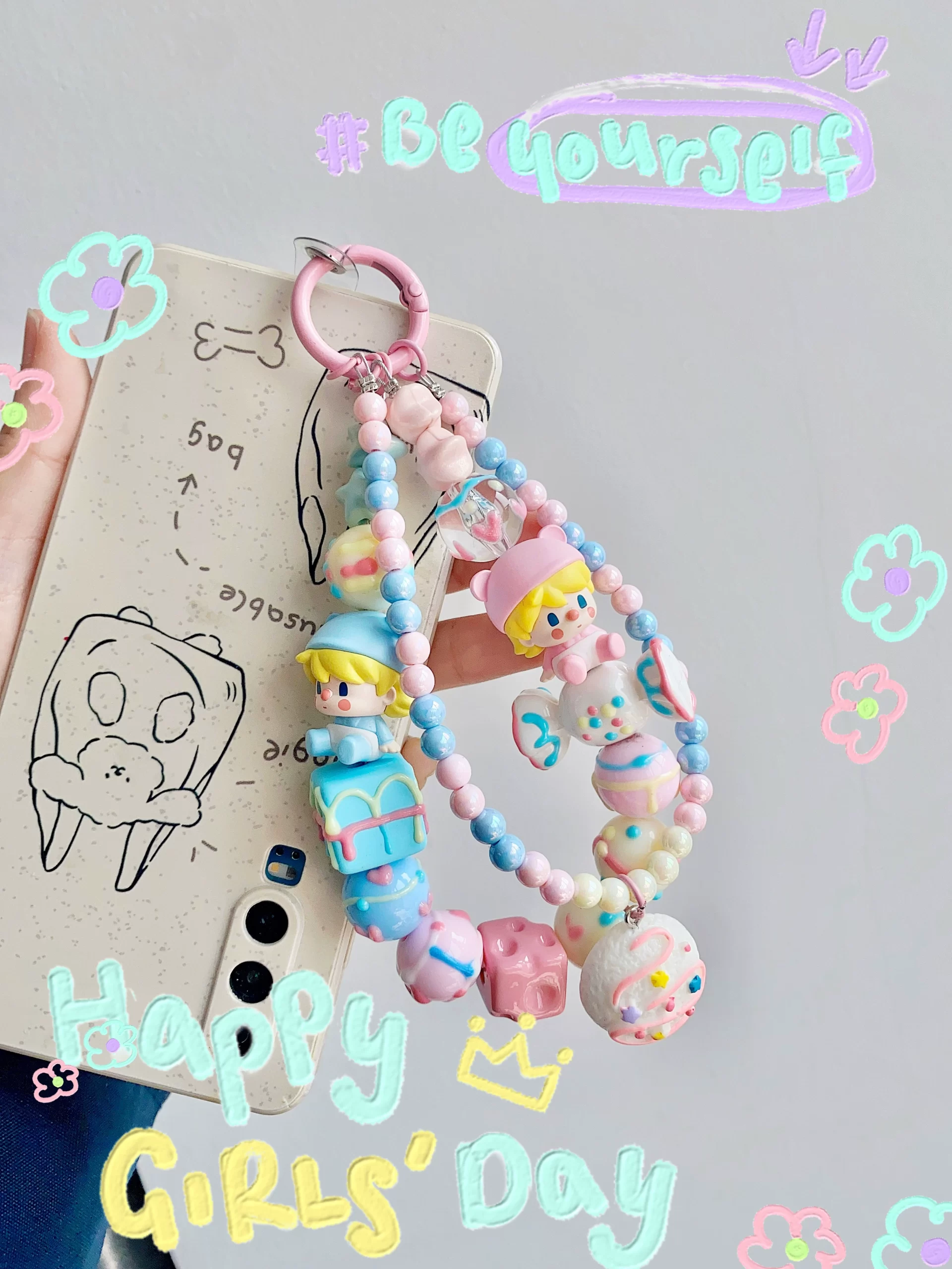 | nameOriginal | Double baby model, authentic Bubble Mart cute hand-painted beads mobile phone chain/key chain/bag pendant hanging finished product |