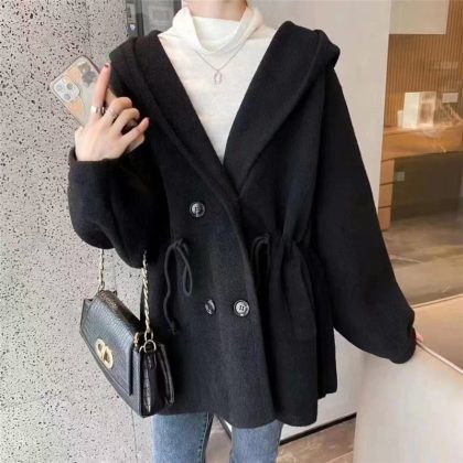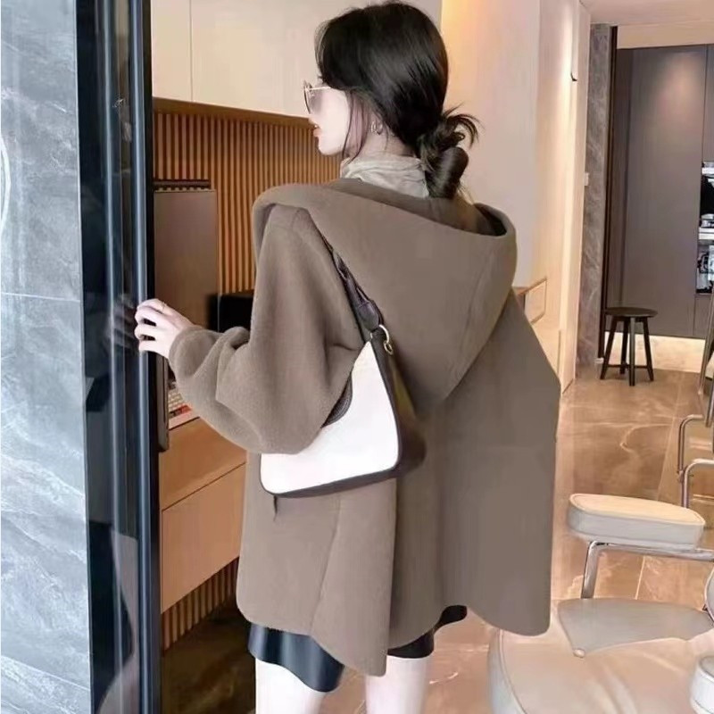 | nameOriginal | Double-breasted knitted cardigan 2023 Autumn New imitation double-sided coat women's Korean-style thick hooded woolen coat |
