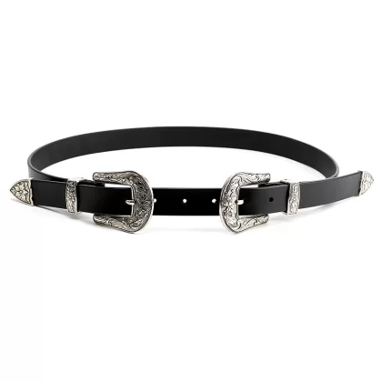 حزام نسائي ذو طرفين مزين بالجلد الطبيعي. حزام للنساء، بسيط ومتعدد الاستخدامات للطلاب. النمط الأدبي الكلاسيكي على الطراز الكوري مع حزام البنطلون.