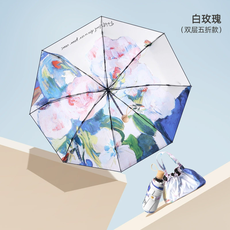 | nameOriginal | Double flower illustration hand-painted style compact dual-purpose sun umbrella |