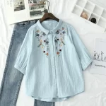 | nameOriginal | Double-layer cotton gauze small fresh flower embroidered mid-sleeve shirt |